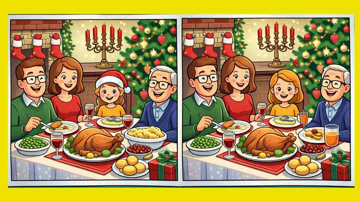 Så er du klar til den næste udfordring? Se nærmere på to billeder af en julemiddag med familien. De ser måske ens ud ved første øjekast, men der gemmer sig 3 små forskelle i dem. Tror du, at du kan finde dem alle på 16 sekunder? Prøv det, og test din synsstyrke!